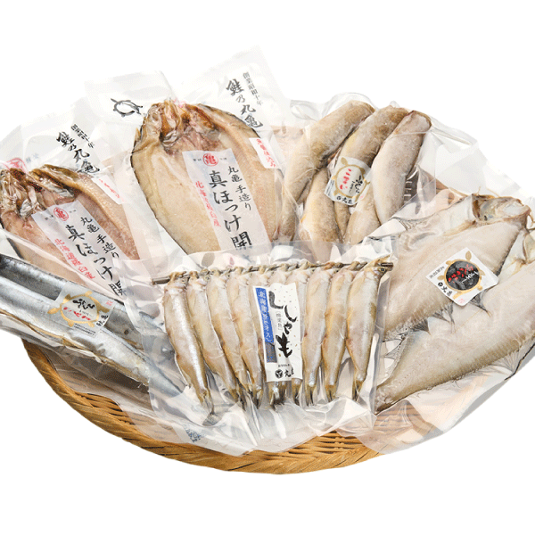 | 原材料名 | 【真ほっけ】真ほっけ(北海道産)、食塩、魚醤 【宗八かれい】宗八かれい(北海道産)、食塩 【こまい】 こまい(北海道産)、食塩 【ふっくらさんま】さんま(北海道産)、食塩、魚醤 【ししゃもオス】ししゃも(北海道産)、食塩 |