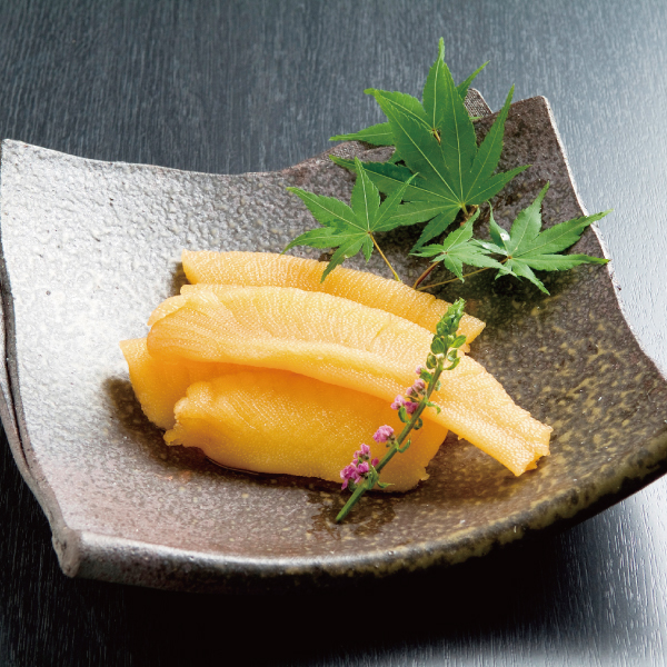 日本海で水揚げされた鮮度の良い数の子を使用したあごだし薫る白醤油仕立ての味付け数の子です。