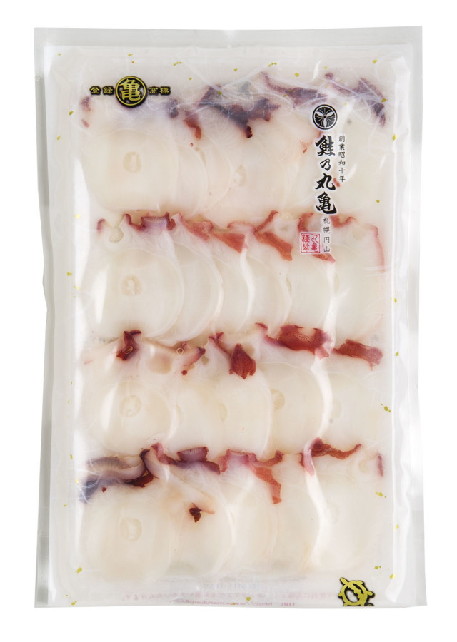 北海道沿岸で水揚げされたたこを薄くスライスしております。
