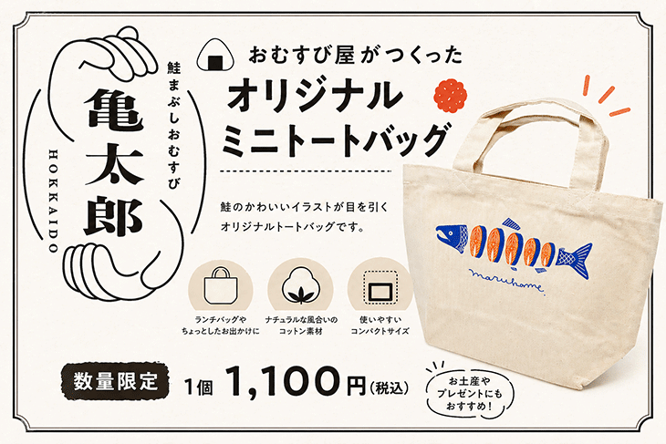 - 鮭まぶしおむすび亀太郎オリジナルミニトートバッグ -
