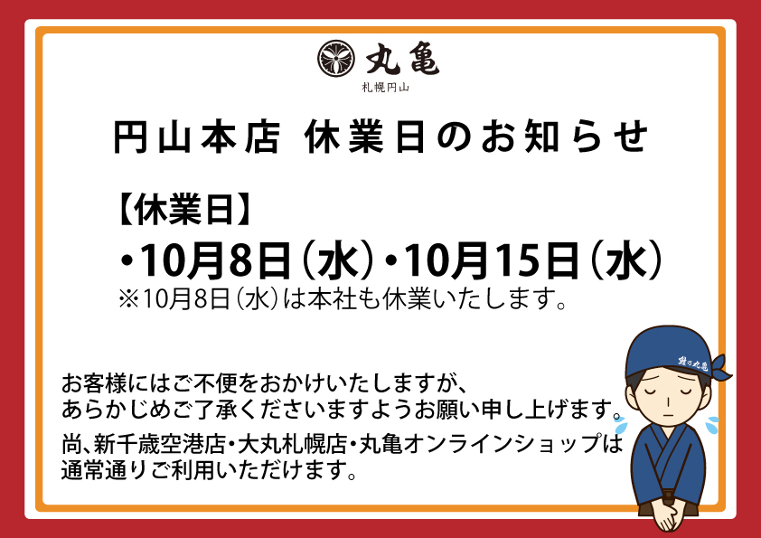 下記、10月の円山本店の営業に関するお知らせとなります。