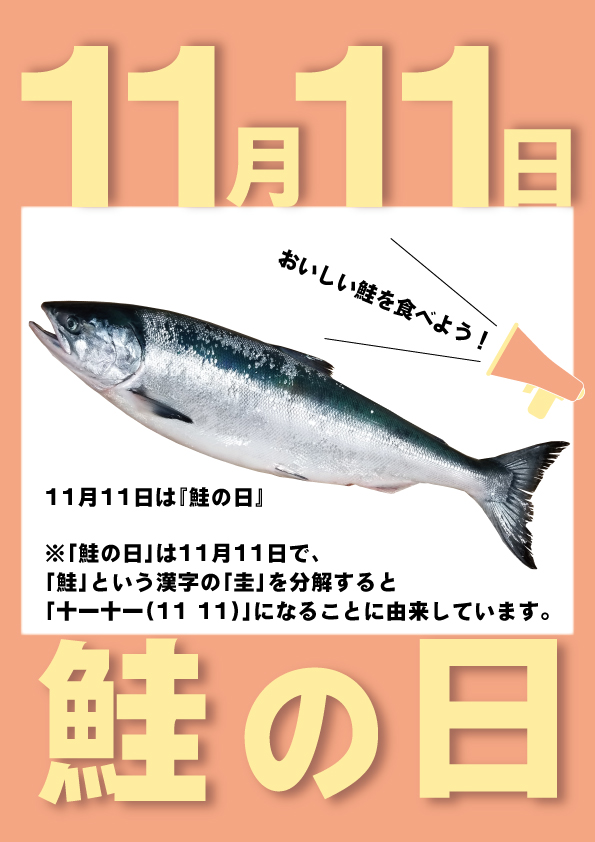 ※「鮭の日」は11月11日で、「鮭」という漢字の「圭」を分解すると