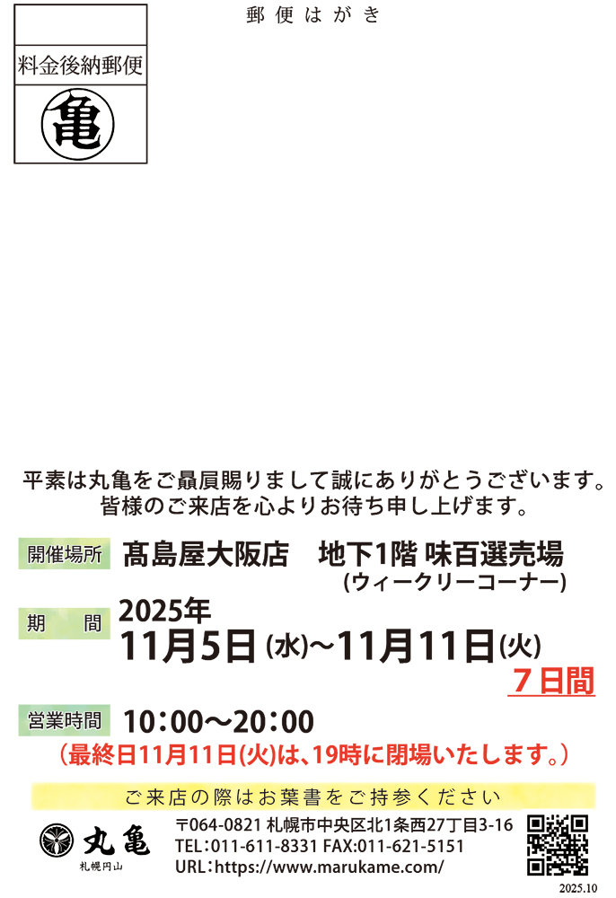 【期間】   2025年11月5日(水)~11月11日(火)7日間