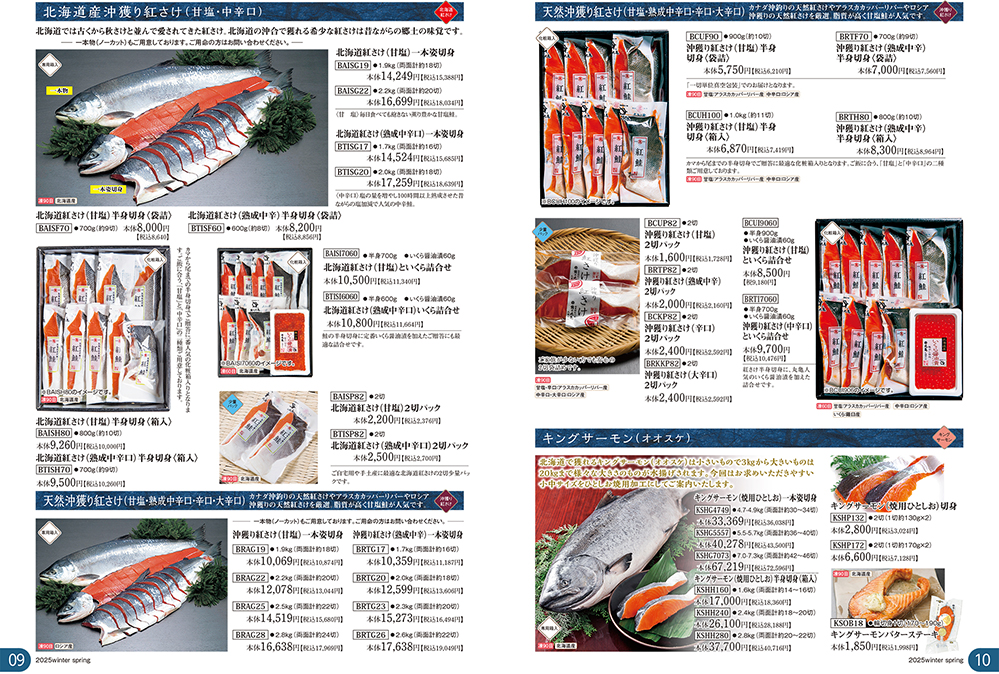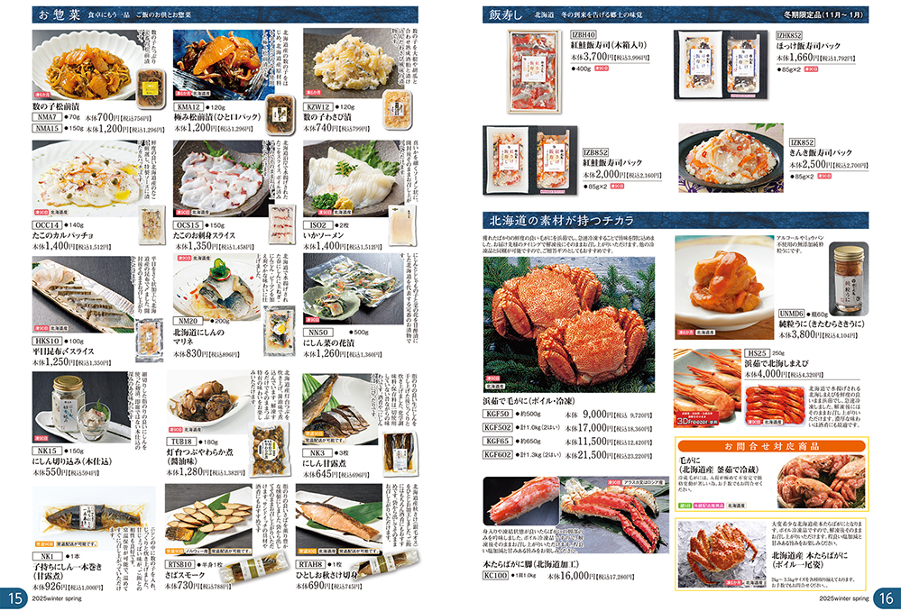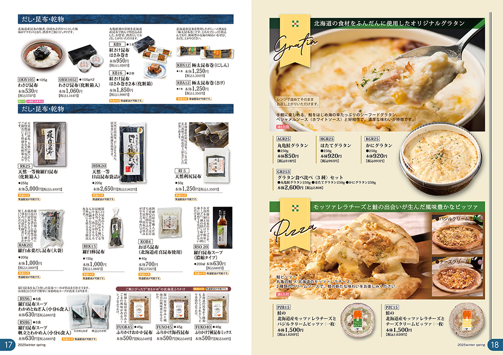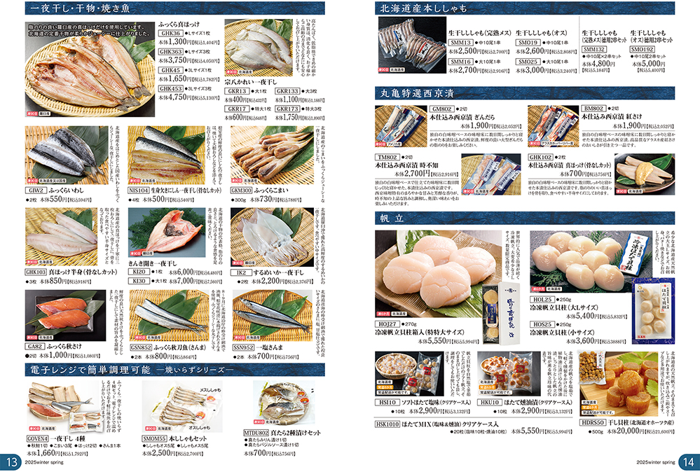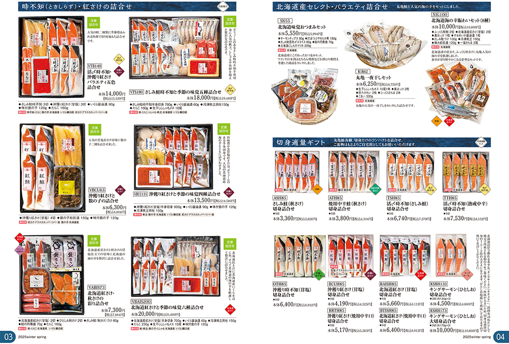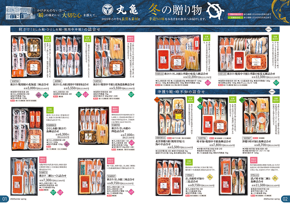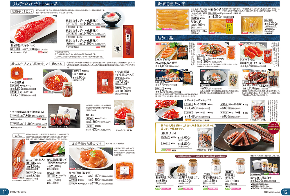 旬を迎えた【秋さけ】をはじめ。 御歳暮ギフトでお使いいただける商品と年末年始のお使いいただける季節の食材を掲載したパンフレットができあがりました。