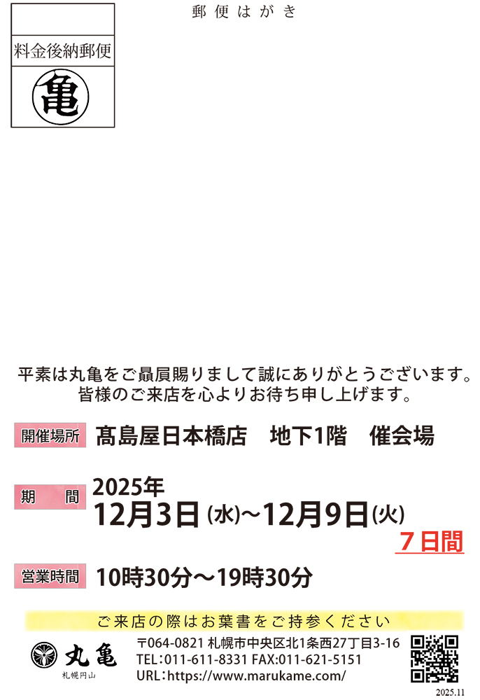 下記のとおり髙島屋 日本橋店様に出店させていただきます。