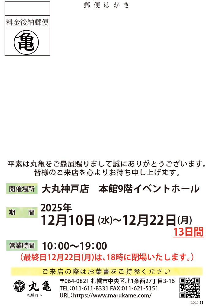 【営業時間】 10:00~19:00(最終日12月22日(月)は、18時に閉場いたします。)