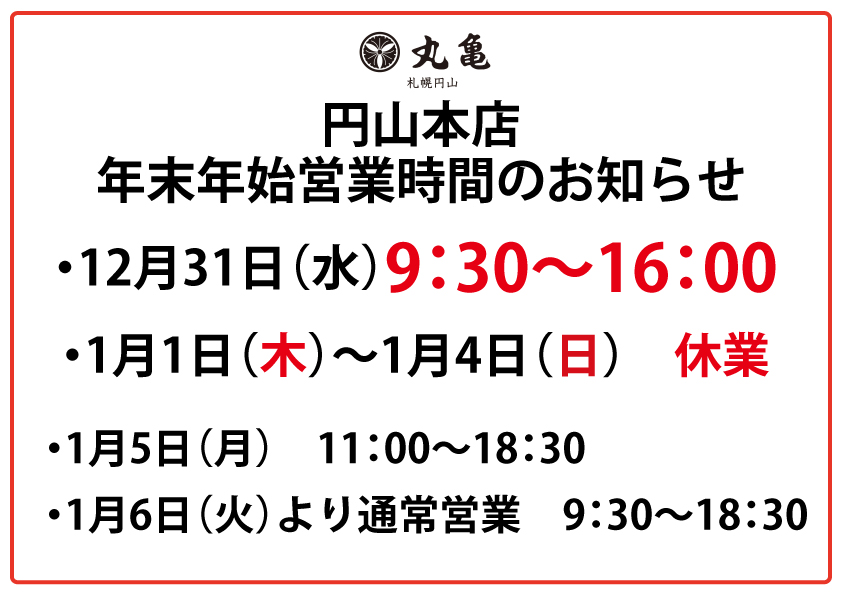 ・12月31日は9:30~16:00迄の営業
