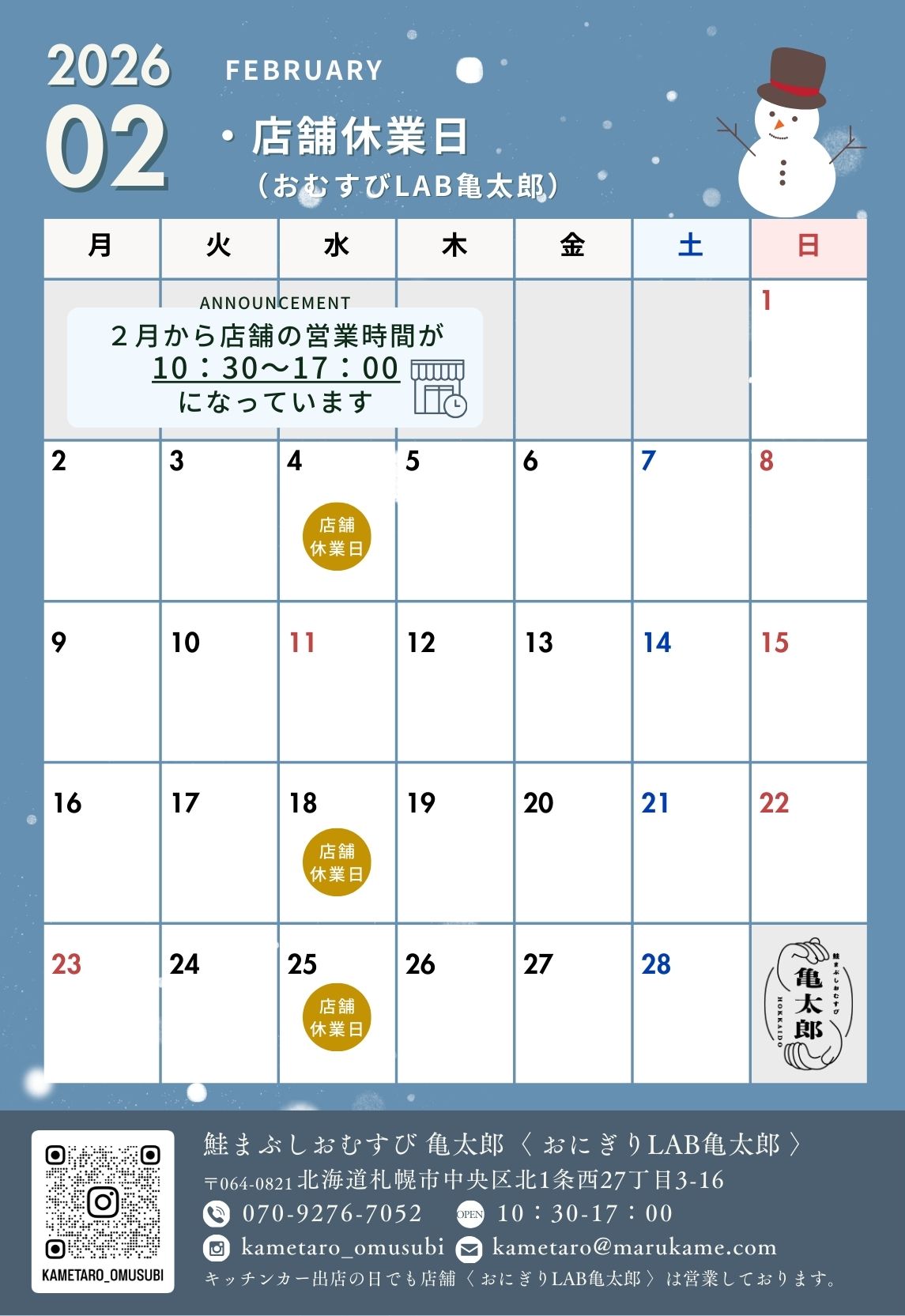 【2月の休業日のお知らせ】