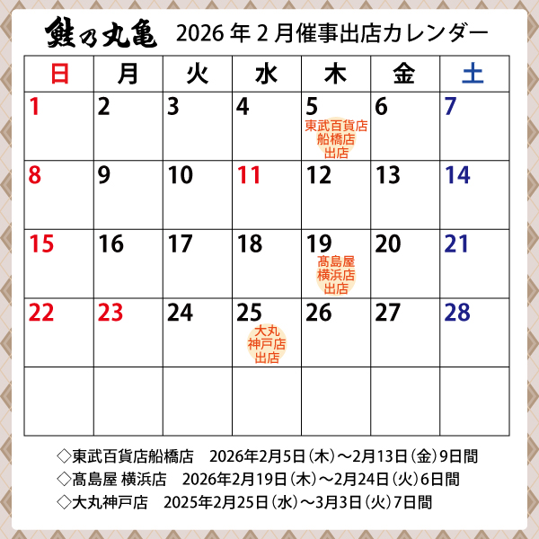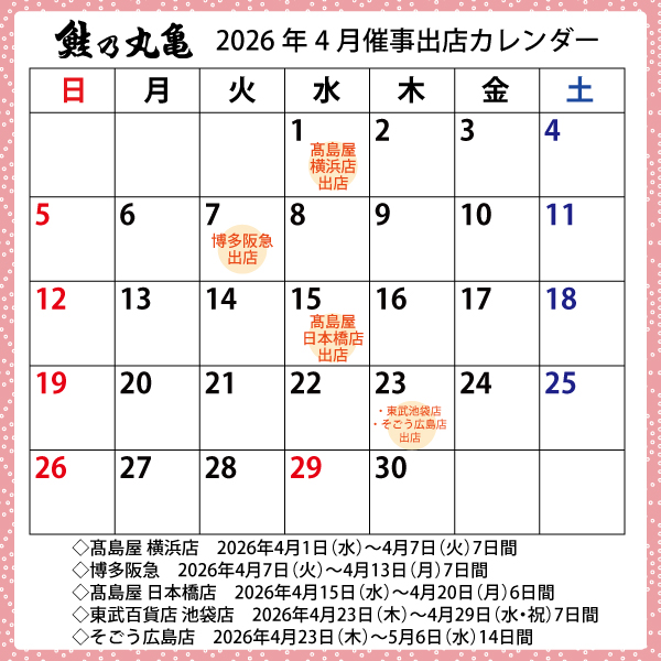 下記のとおり 東武百貨店 船橋店 様に出店させていただきます。