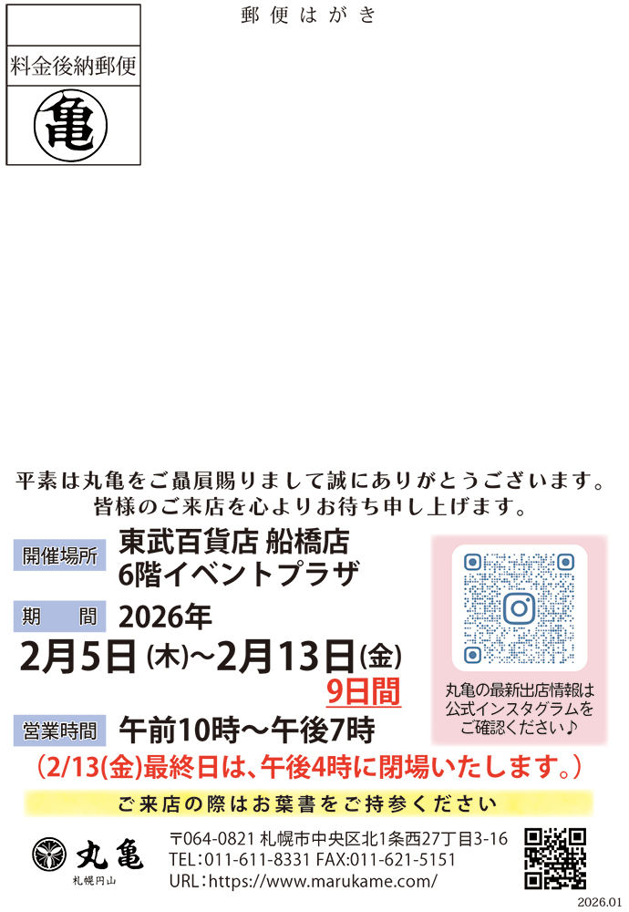 【期間】 2026年2月5日(木)~2月13日(金)9日間