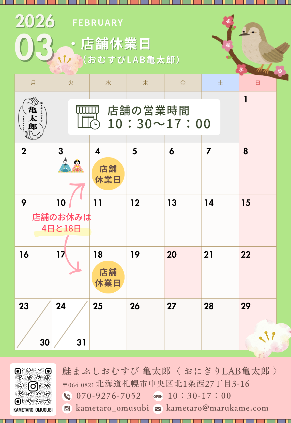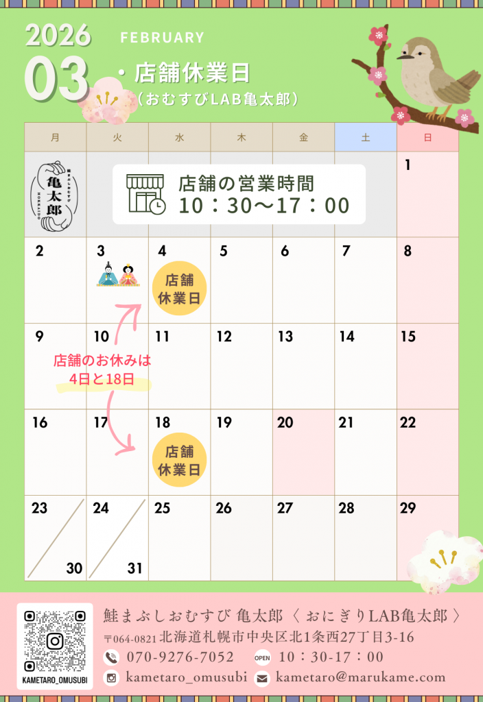 3月の営業日のお知らせ 🌸